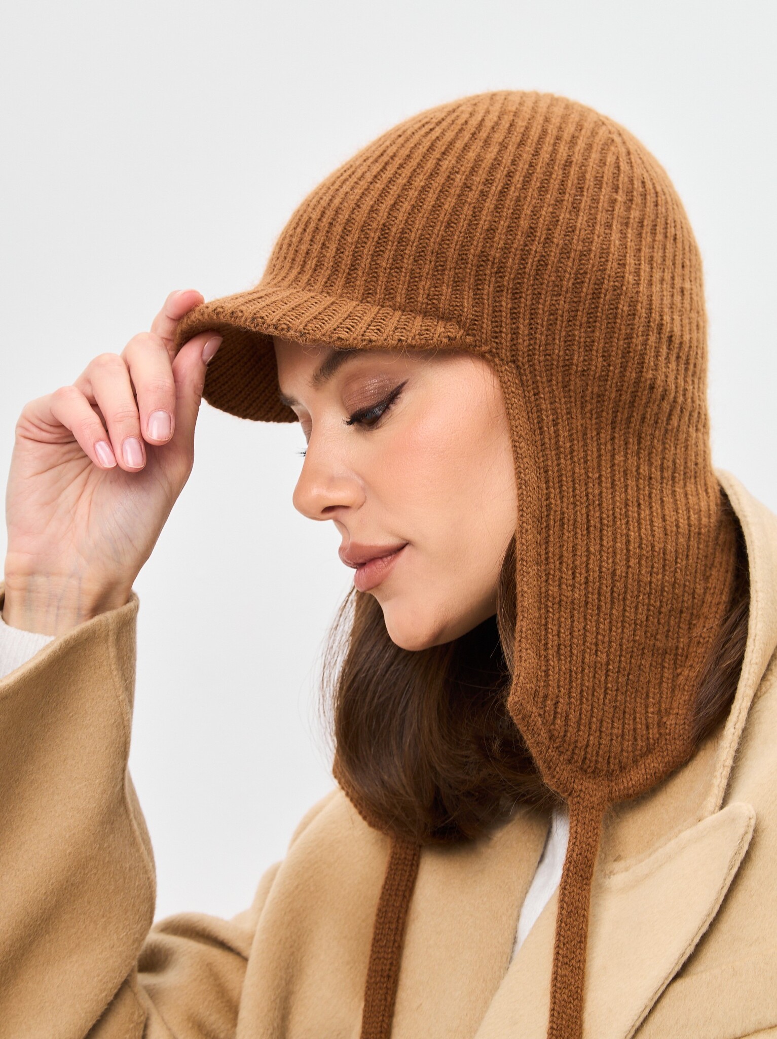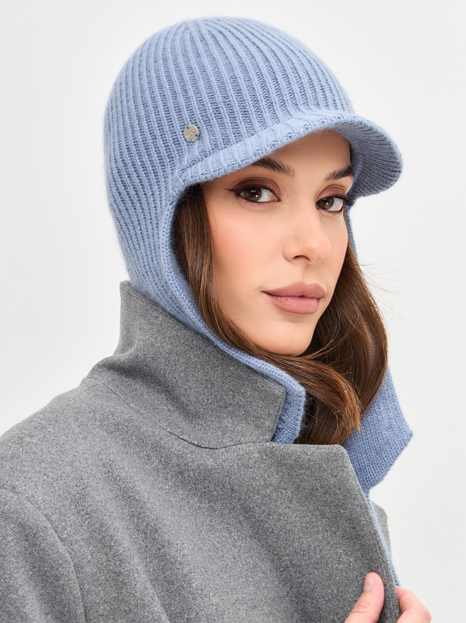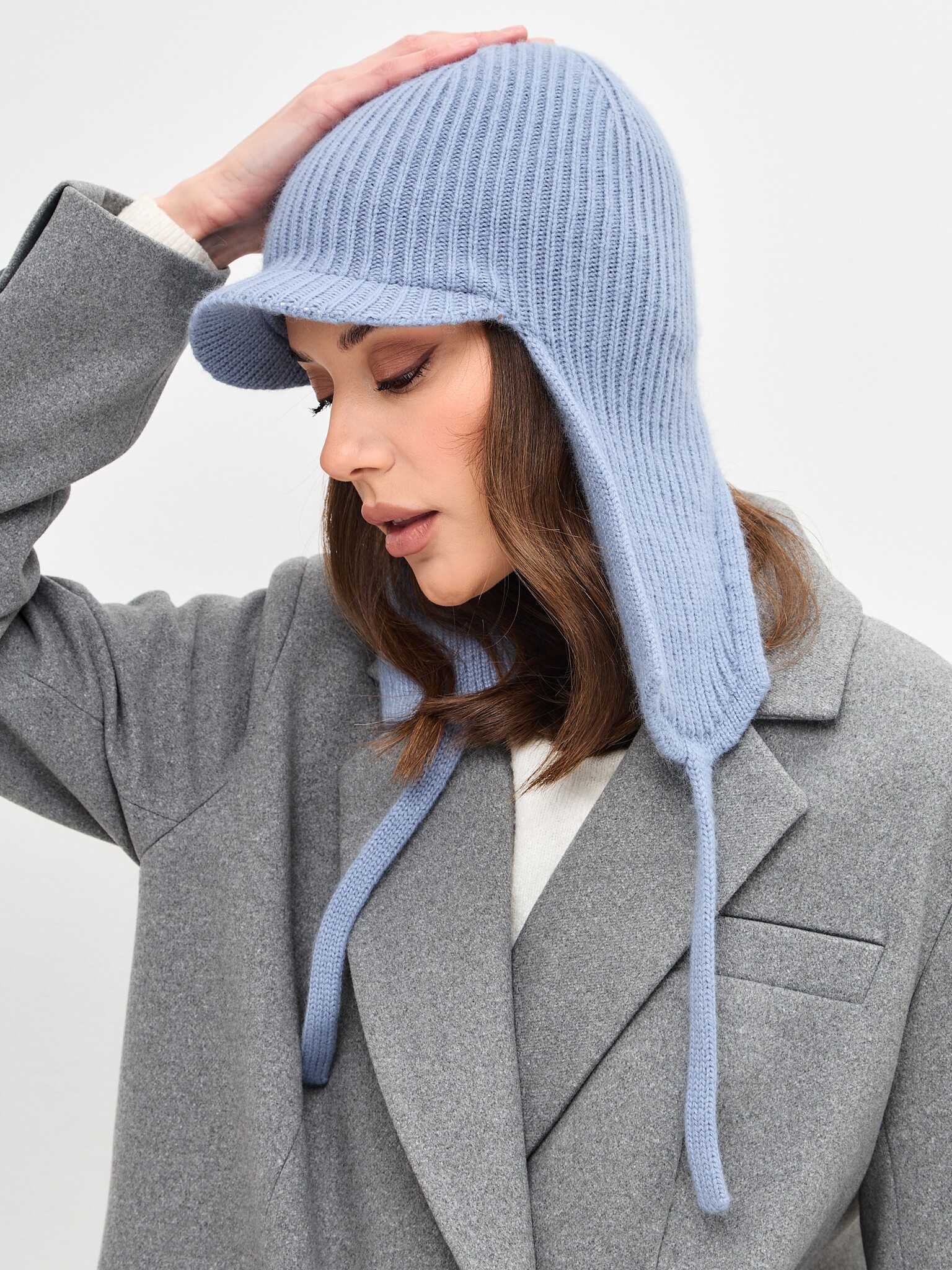 Шапка-ушанка JEMMA с козырьком двойная (козырек 3,5см) с шерстью стриженной ангоры