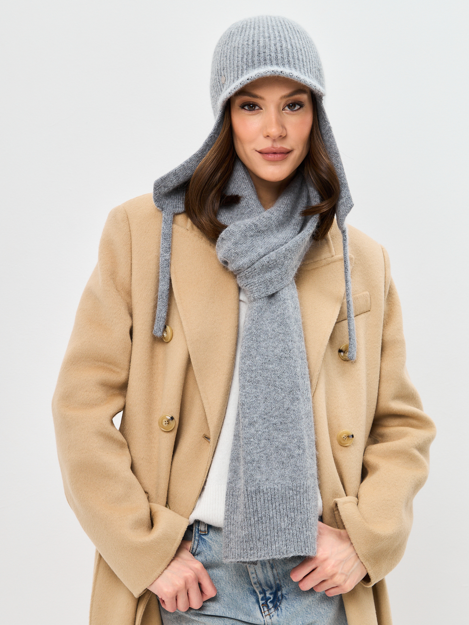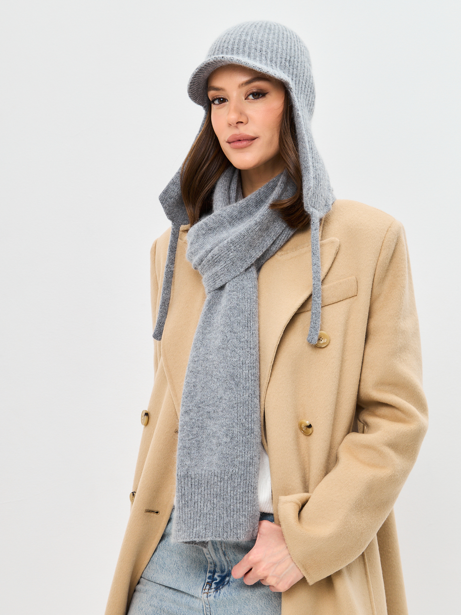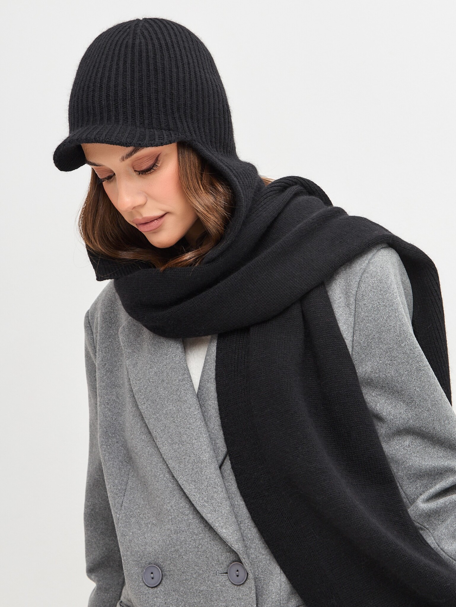 Шапка-ушанка JEMMA с козырьком двойная (козырек 3,5см) с шерстью стриженной ангоры