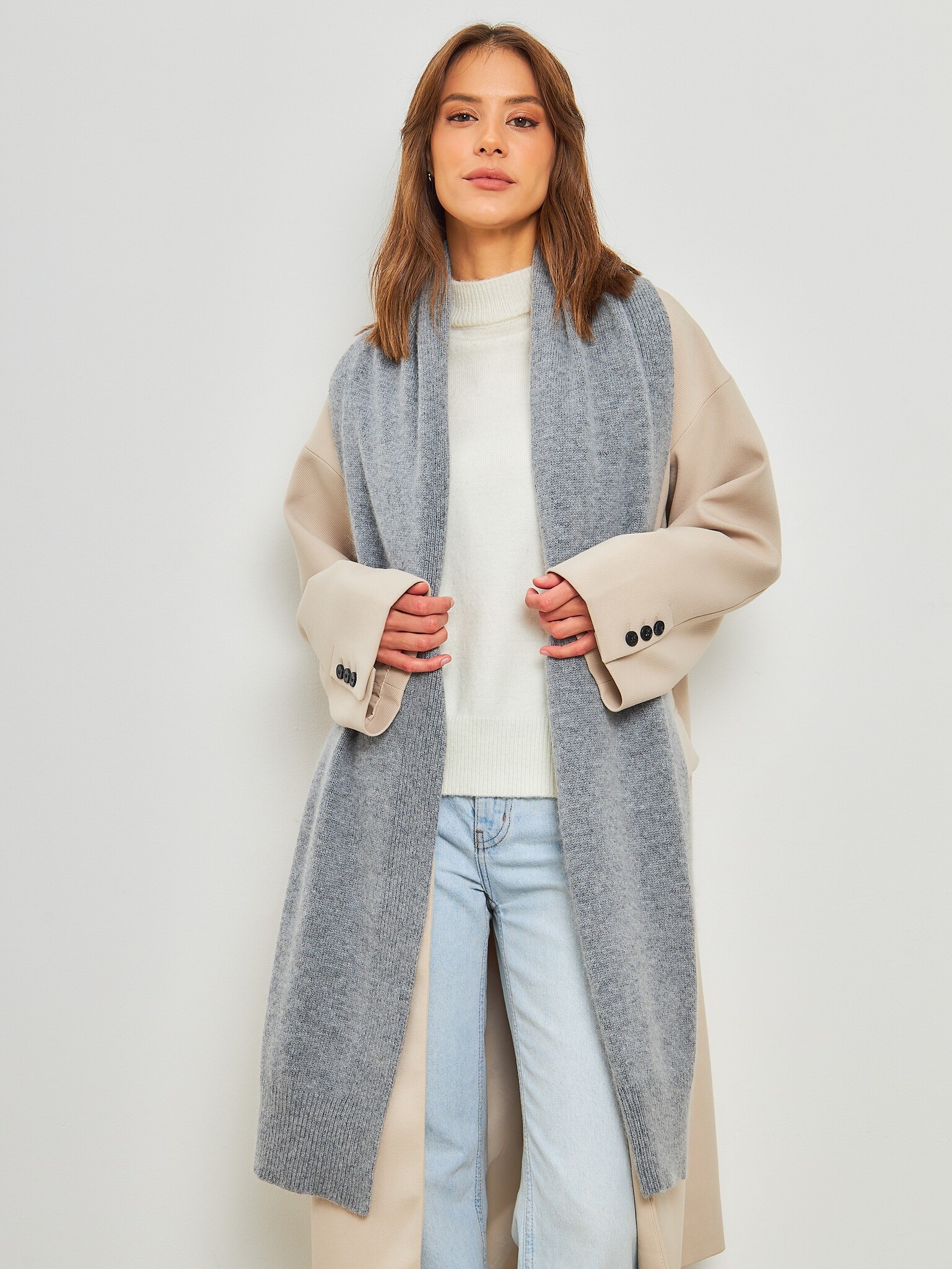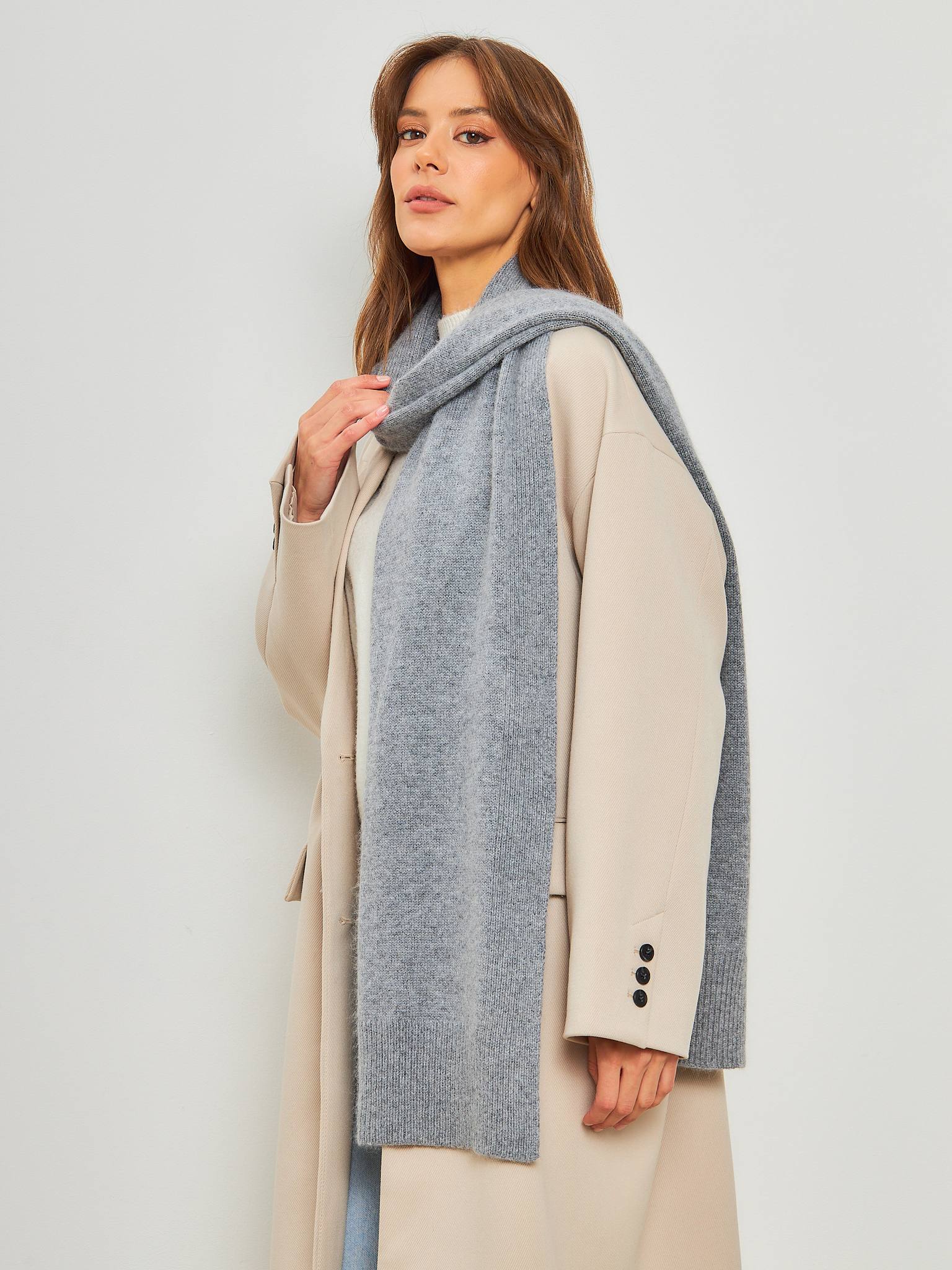 Шарф PAOLO длинный резинкой 1х1 с шерстью стриженной ангоры